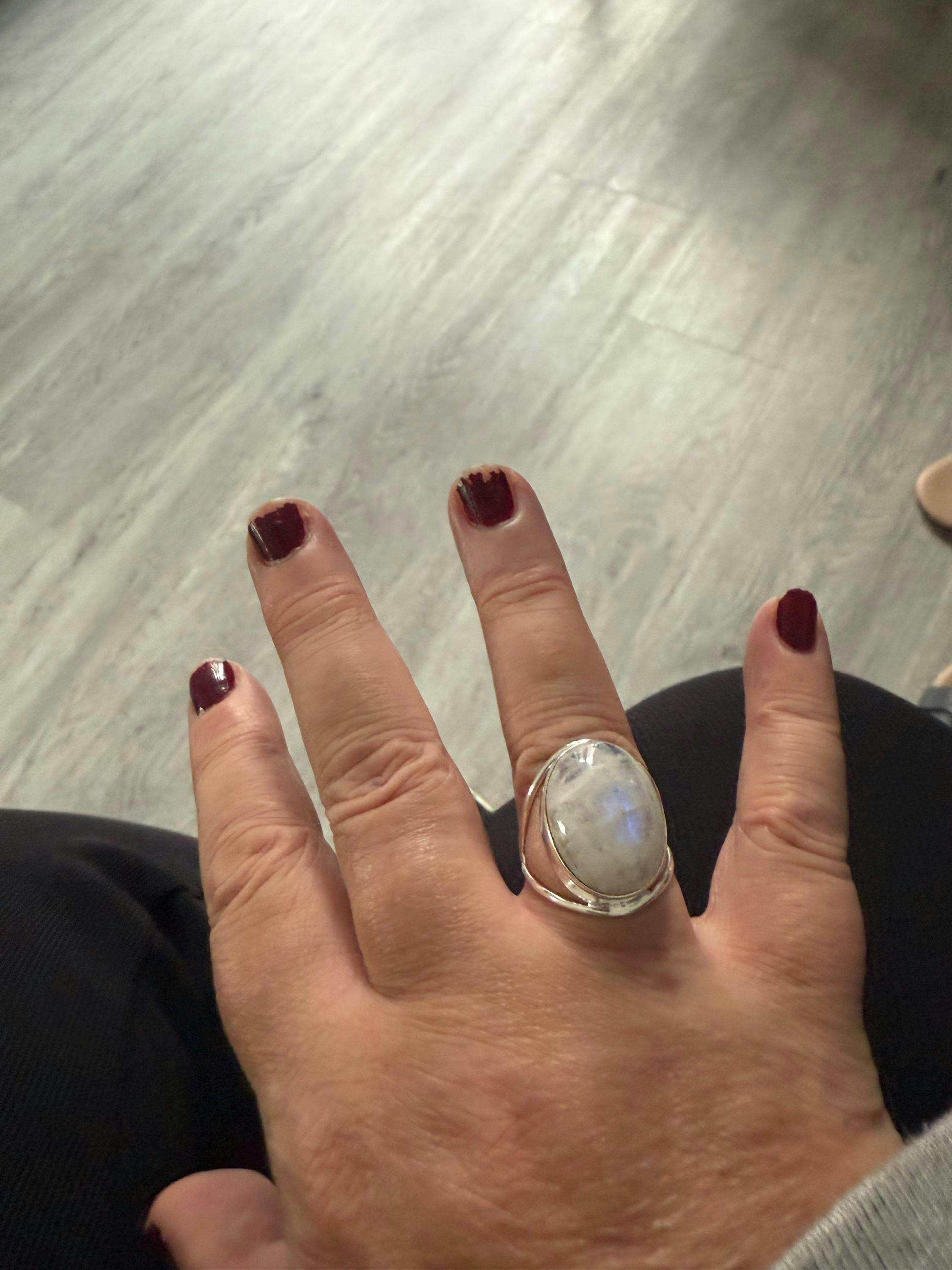 Beautiful ring! Very happy with the item. I get quite a few compliments when I wear it. The moonstone is beautiful and the fit is perfect! Very comfortable to wear!