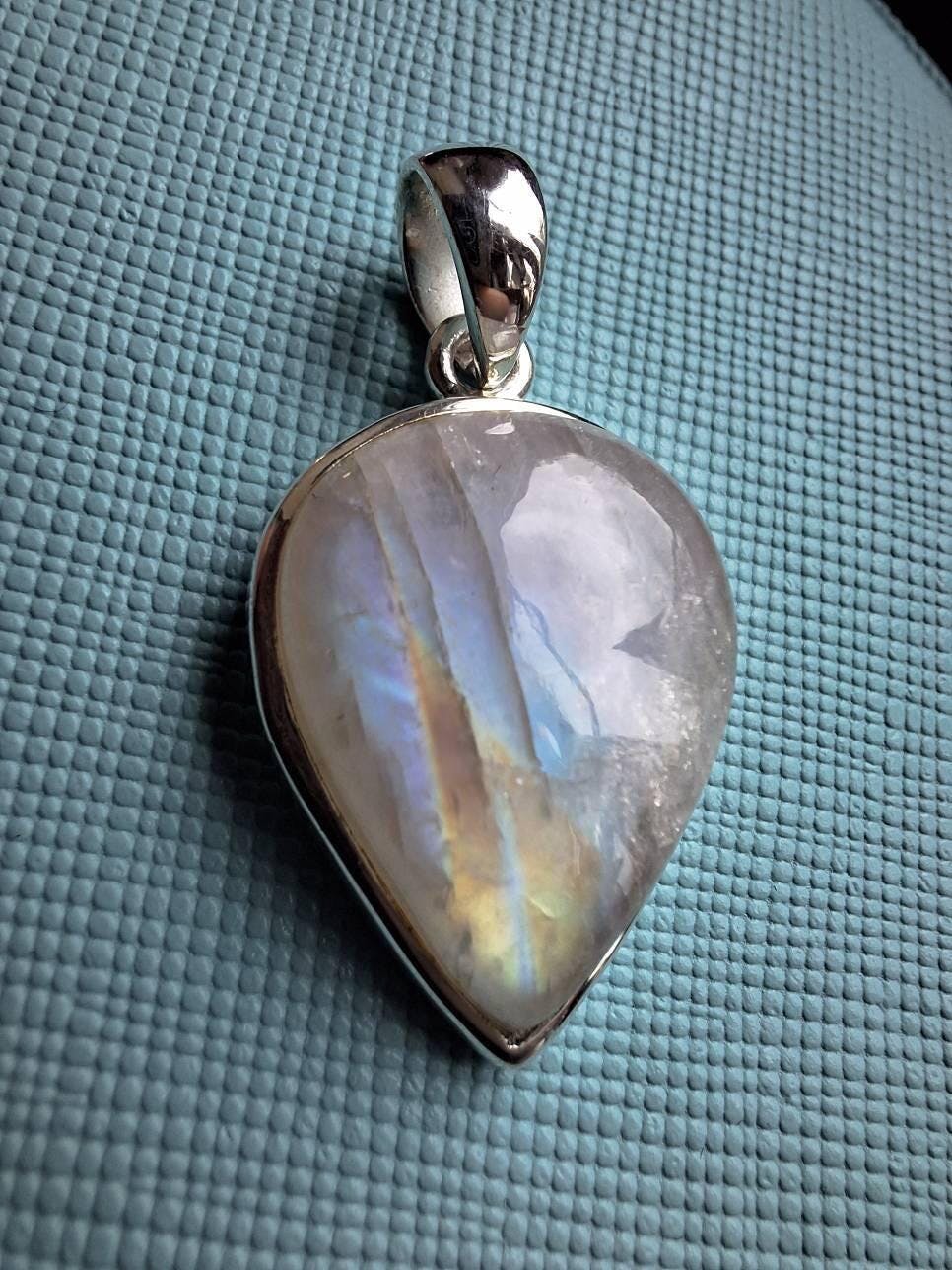Radiant Small Heart Shaped Rainbow Moonstone Pendant set in 925 Sterling Silver. Perfect irridescent blue gemstone Pendant for Women and Young Girls, and an ideal gift for a June Birthday. The pendant shown is the one you will receive.