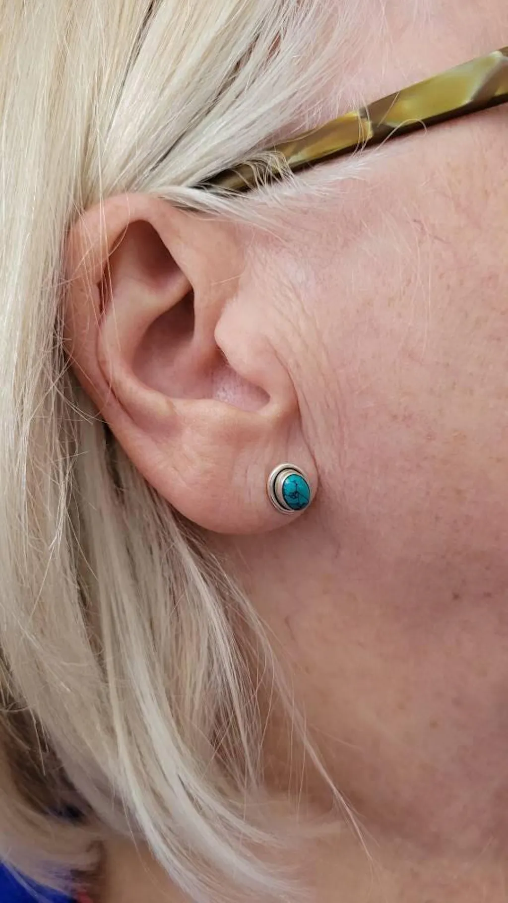 Stylish Large Oval Turquoise Studs set in 925 Sterling Silver, with a silver rim around the stone, which really lifts this design. Perfect gift for Women, and and ideal gift for a December birthday or 11th Anniversary.